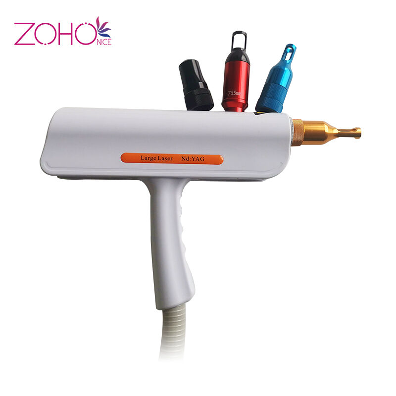 Remover tatuagens com bastões duplos, remover sardas com uma alça de laser ND YAG.