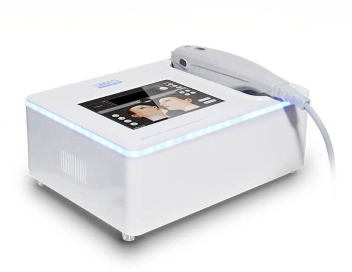 Este dispositivo utiliza a energia ultrassônica mais avançada, penetração profunda na derme profunda e na camada SMAS, produz quase dez mil pontos de condensação, faz o colágeno, as fibras produzidas e imediatamente encolhem e estimulam o colágeno e novo recombinante, construindo uma nova rede de fibras de colágeno para aumentar a elasticidade da parte inferior da pele para a pele.