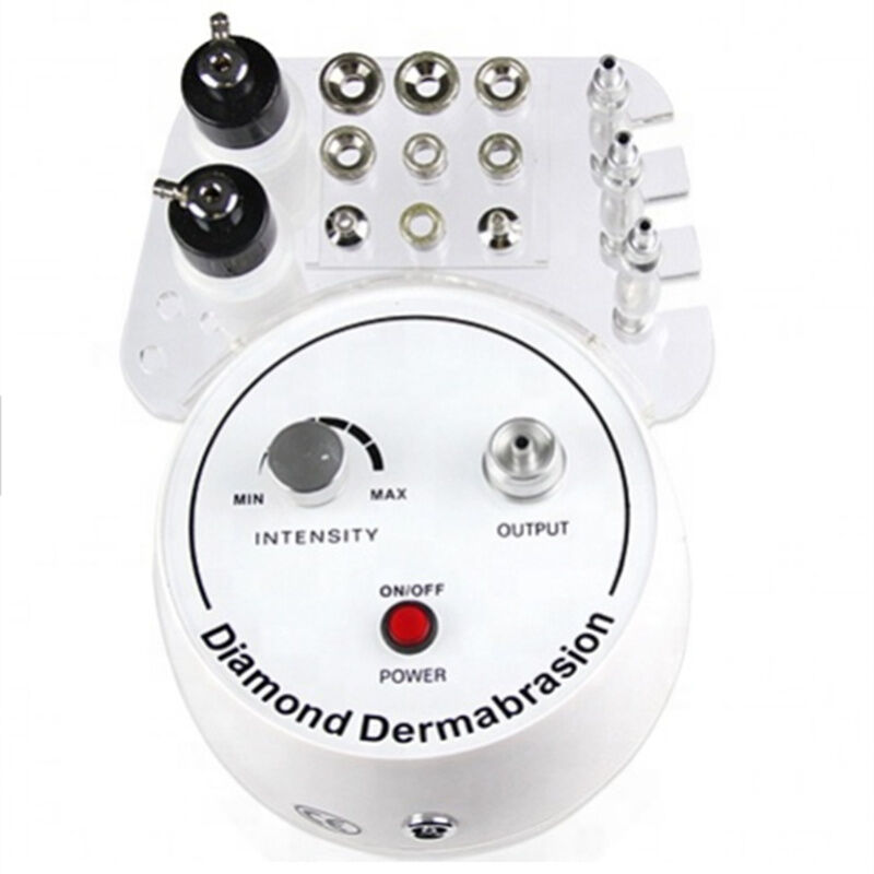Com os grãos de diamante nas cabeças, Máquina de Dermabrasia w/9 HEADS, através de sucção a vácuo, moer o córneo morto e sujeira fora da epiderme, melhorar o estado da pele, efetivamente diminuir pequenas rugas,Suaviza as cicatrizes como a acne e as superfícies irregulares da pele, torna a pele mais veludo e sensível, estimula o renascimento da epiderme, aumenta a elasticidade da pele.a forma mais eficaz de renovação física da pele.